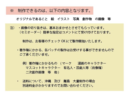 *缶バッチは、1個単位で注文をお受けしております。